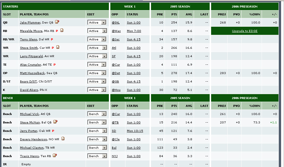 started and although I didn't get Brett Favre this year, the season is looking promising: