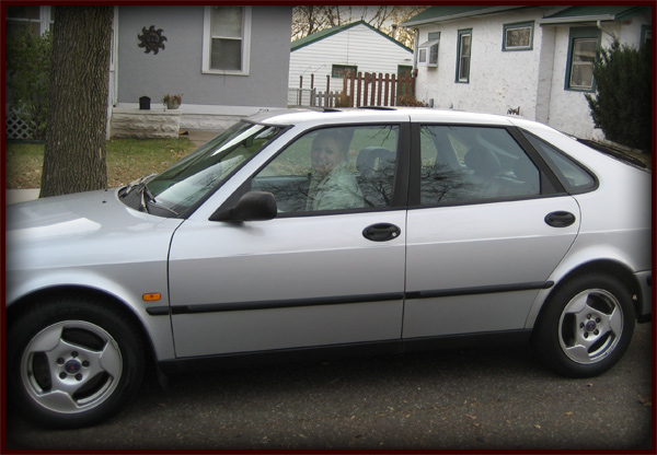 like it a lot as does she. Anywho, it's a 99' silver Saab 9-3. Check out the pics: