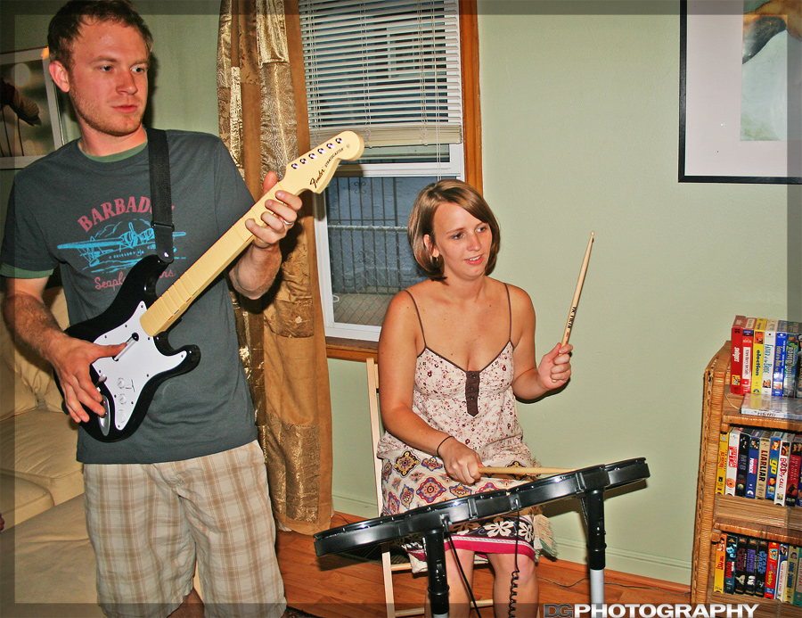 Linds, Rita n Leo, Schaef, Emily, and Doug beer brat/veggie boat/boccee ball/rockband-apalooza. [sidenote: to the Kellins, I am